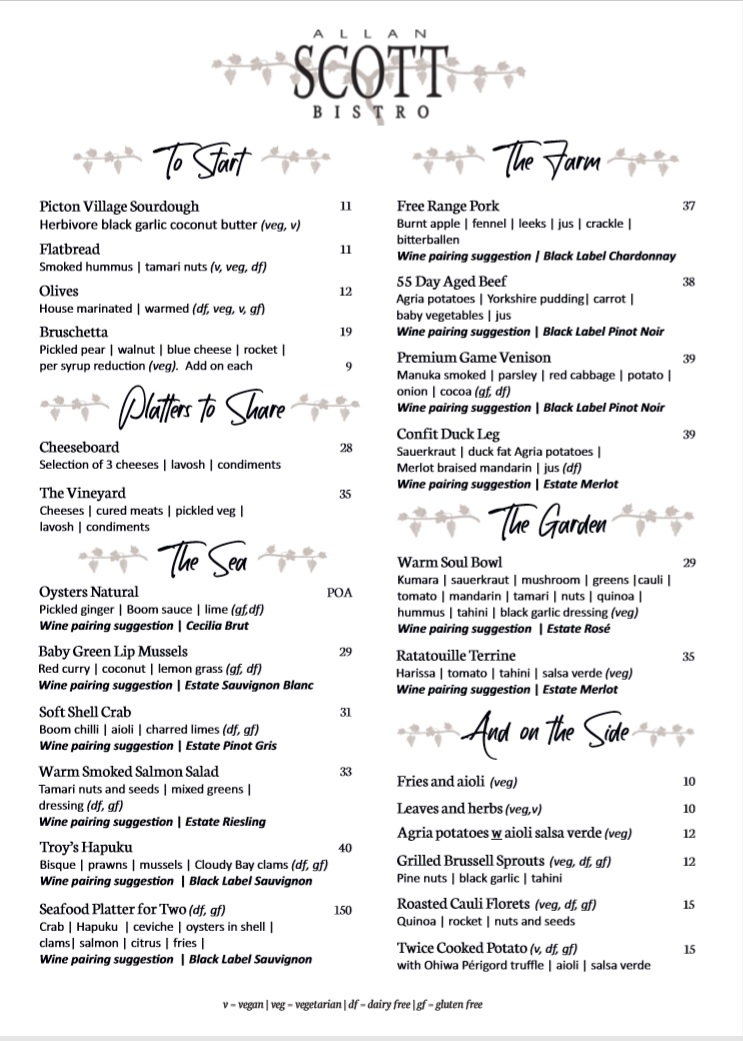 Welcome to the delightful world of Allan Scott Bistro, nestled amidst the breathtaking vineyards of Marlborough, New Zealand. This charming bistro is a haven for food enthusiasts, offering a menu that celebrates fresh, local ingredients with a sophisticated twist.